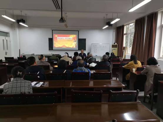 2019年11月11日下午,老干总支第四支部和第七支部共19人在望江西区309会议室开组织生活会,组织生活会由第七支部书记姜迎春(代)主持。本次组织生活会内容主要分两大部分,一是杨静波处长为党员干部们上主题党课,题目为《不忘初心,慎重用权,清正有为,方得始终》,二是杨静波处长召开对照党章党规找差距专题会议。
