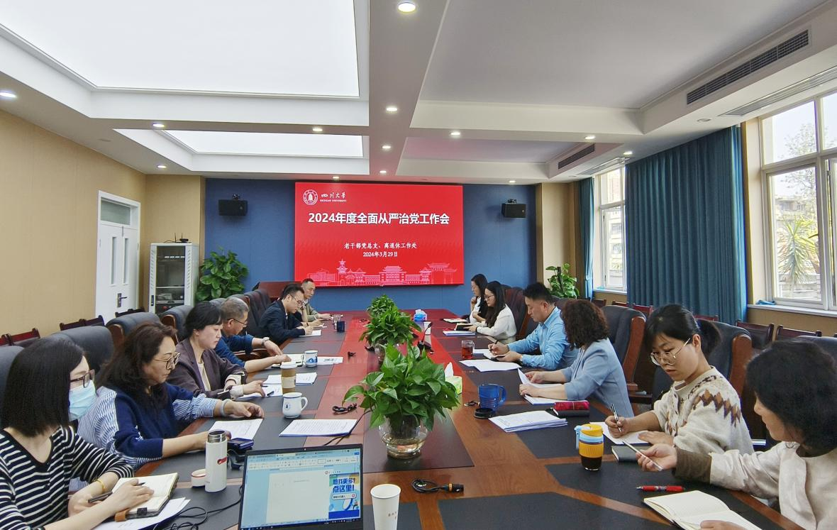 老干部党总支纪检委员、yl7703永利集团副处长朱颖传达了校党委书记甘霖,校长汪劲松,校党委副书记、纪委书记、国家监委驻四川大学监察专员张卓在学校2024年全面从严治党工作会上的讲话和《四川大学2024年全面从严治党工作要点及分工》文件。