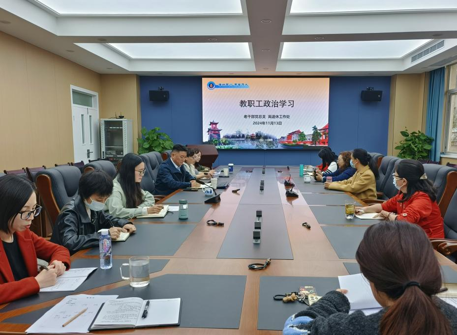 11月13日下午,老干部党总支、yl7703永利集团在望江校区文华活动中心组织开展教职工政治学习,老干部党总支副书记、yl7703永利集团副处长罗梅主持,单位在职教职工参加。
