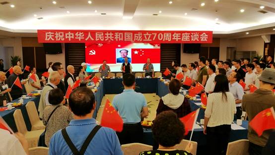 座谈会最后,全体人员挥舞着手中的国旗,齐声高唱《歌唱祖国》,表达对祖国母亲的深切热爱和美好祝福!