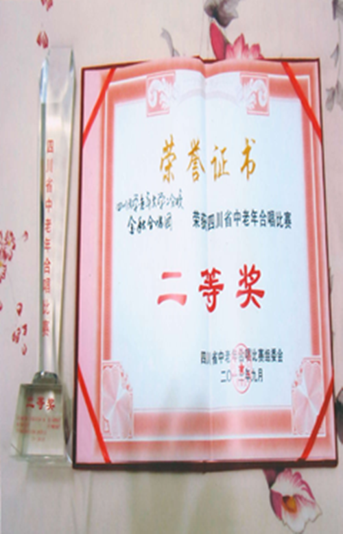 2013年9月26日,由四川省教育厅、省文化厅、省民政厅、省老龄工作委员会办公室、省直属机关老龄工作委员会组织举办的四川省中老年合唱比赛中,我校金秋艺术团荣获二等奖。