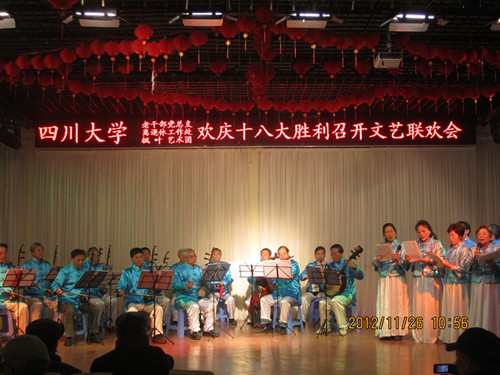 本次联欢会由四川大学老干部党总支、yl7703永利集团、枫叶艺术团主办,来自我校100多名离退休人员带来了精心准备的《江山》、《走向复兴》、《情系海洋》等16个形式多样的节目,充分表达了他们对党的讴歌和美好生活的赞美,以及他们对祖国的热爱和对美好未来的憧憬。老同志们精彩的演出和健康乐观的精神风貌赢得了现场阵阵掌声。