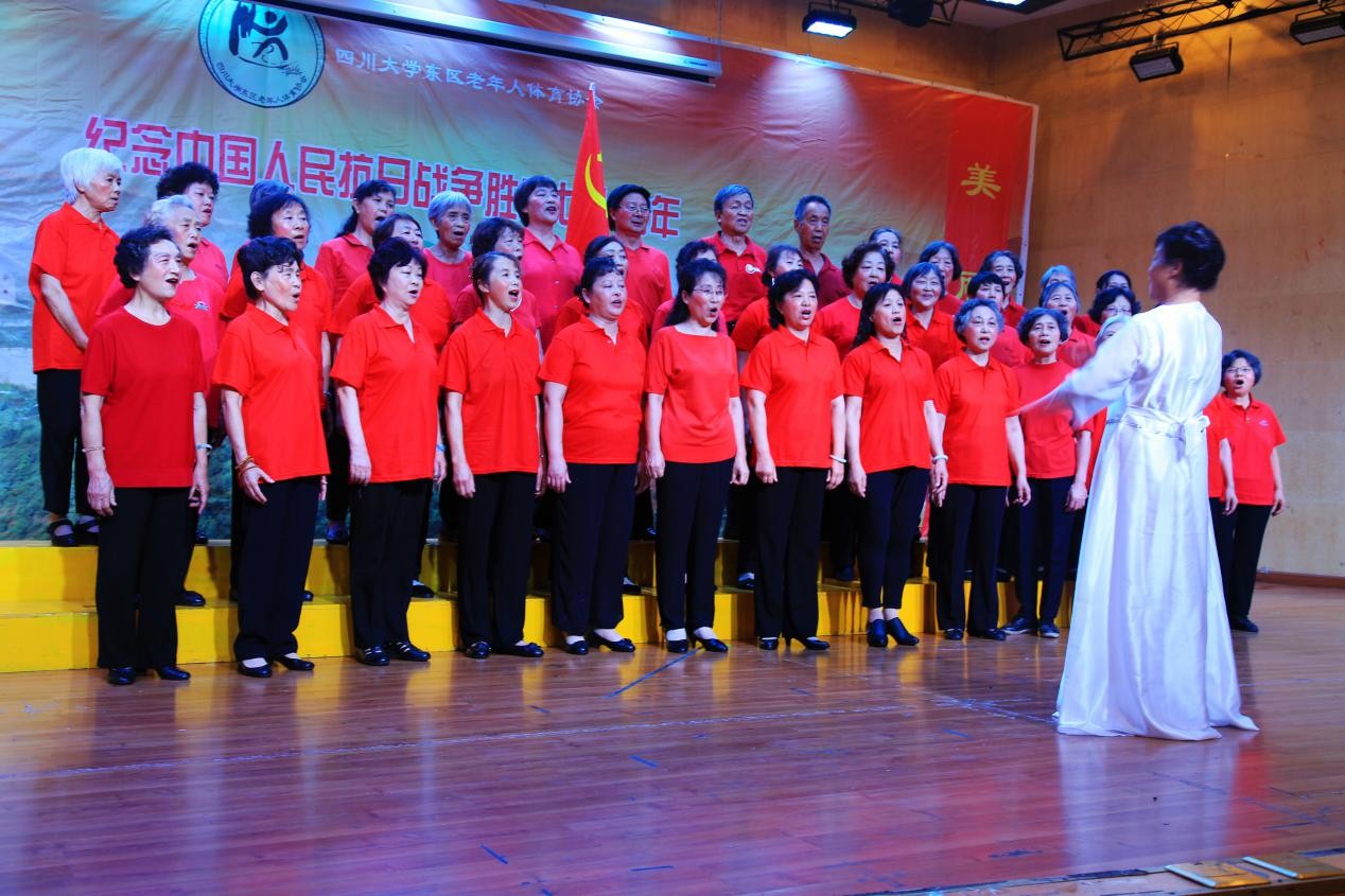6月19日下午2:30,东区老体协在文华活动中心演播厅举办“纪念抗日战争胜利70周年暨反法西斯战争胜利70周年”文艺汇演,老干部党总支书记史冰川、yl7703永利集团处长杨静波,yl7703永利集团副处长马绍琼,东区老体协主席龙济鑫等出席了此次活动,东区老体协成员参加了此次表演。