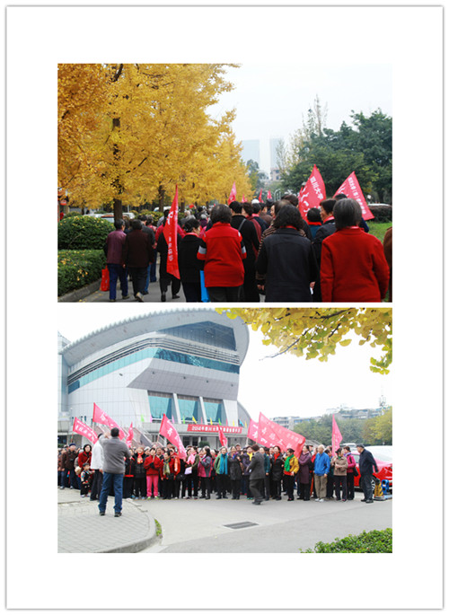 在这银杏飞舞的初冬时节,四川大学老体协举行了2014年校园绿道健步走。从体育馆出发,沿着文化路银杏大道,一队队意气风发的老人迈着矫健的步伐向着游泳池方向前进。校园绿道健步走是四川大学老体协的传统项目,参加人数众多,深受老同志们的欢迎,我们祝愿老年朋友们走出快乐!走出健康!