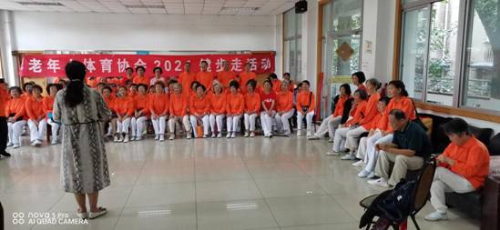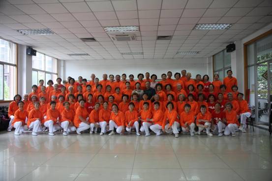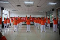 2.离退休处东区二楼操练厅健身运动点:厅内操练大镜前横挂“四川大学老年人体育协会健步走活动”横幅,上午8时30分,91名身着红色运动上衣、白色运动裤的老体协通络操会员汇聚厅内,参加通络操彩排,大家见面心情舒畅,互致问候,共同为百年党庆喝彩,以饱满的热情投入中华通络操彩排,展示中华通络操老有所乐的情趣。由于场地限制,办公室何凤生主任将90位参加彩排的男女会员按八个小组划分,并就进场作了精心安排和布置。9时正,老体协封向东主席致辞:“首先热烈祝贺中国共产党成立100周年!虽受疫情影响,“6.18”党庆活动略有变通仍预期进行,再次感恩、感谢离退休处领导对老体协各项老年活动正常开展,服装经费、场地等方面的关爱和支持,感谢办公室几位默默无闻工作的同志,对此次党庆活动顺利进行的幸勤付出,真心诚意谢谢学校的关爱!”接着前任主席龙济鑫老师也作了声情并茂的讲话,“在百年党庆之际,一定要健康长寿!”