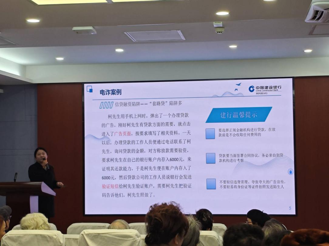 2025年12月17日,华西药学院联合中国建设银行成都第九支行,成功举办面向离退休教师的“安全用卡,智慧防诈”反诈宣讲会,着力提升老教师防骗意识,守护财产安全。